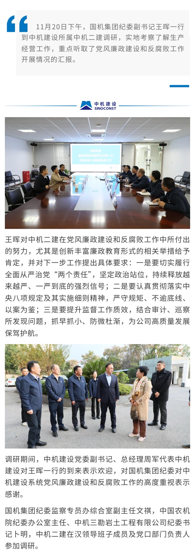 王暉一行到中機二建調(diào)研